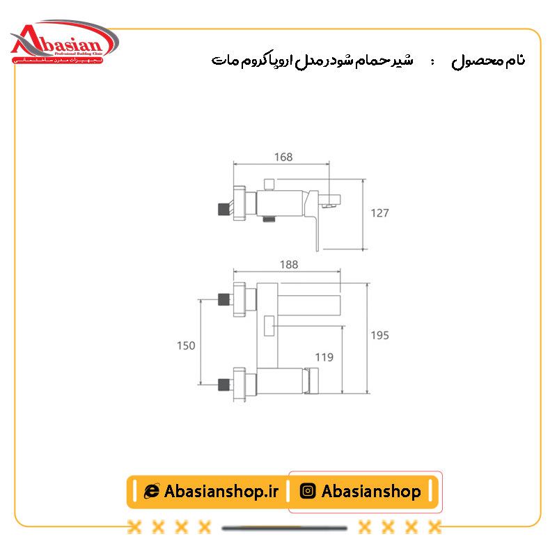 شیر حمام شودر مدل اروپا کروم ماتنقشه شیر حمام شودر مدل اروپا کروم مات