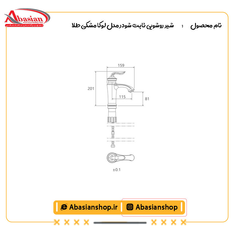 شیر روشویی ثابت شودر مدل لوکا مشکی طلانقشه شیر روشویی ثابت شودر مدل لوکا مشکی طلا