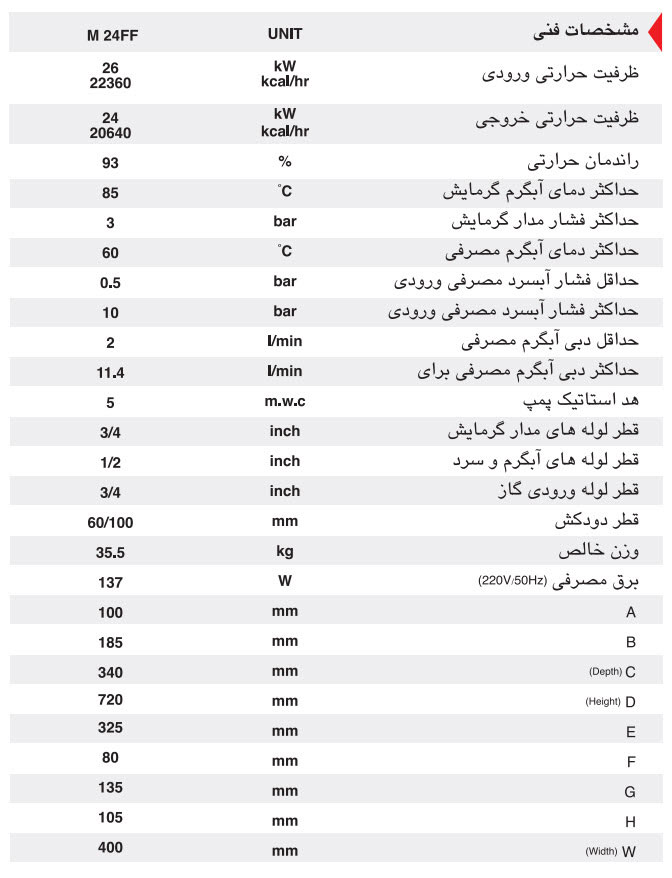 پکیج دیواری ایران رادیاتور مدل M24FF