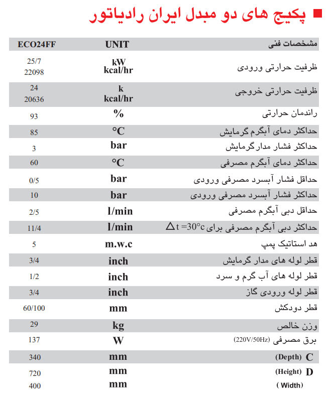 پکیج دیواری ایران رادیاتور مدل ECO24FFمشخصات پکیج دیواری ایران رادیاتور مدل ECO24FF