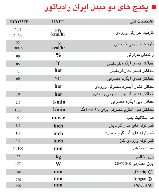 پکیج دیواری ایران رادیاتور مدل ECO22FF
