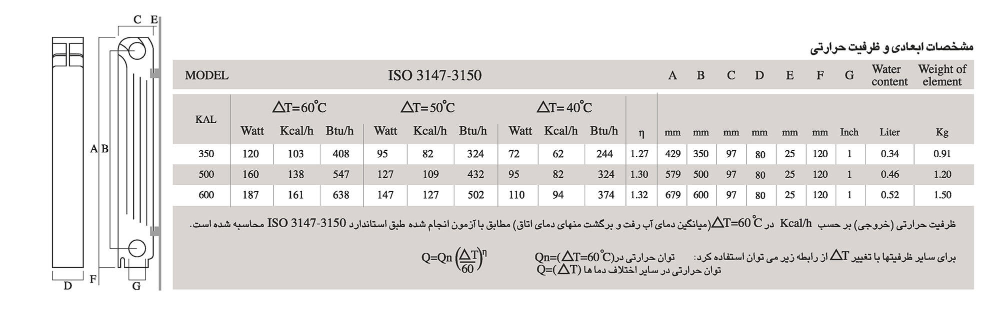 رادیاتور ایران رادیاتور مدل کال 5پرهمشخصات رادیاتور ایران رادیاتور مدل کال 5پره