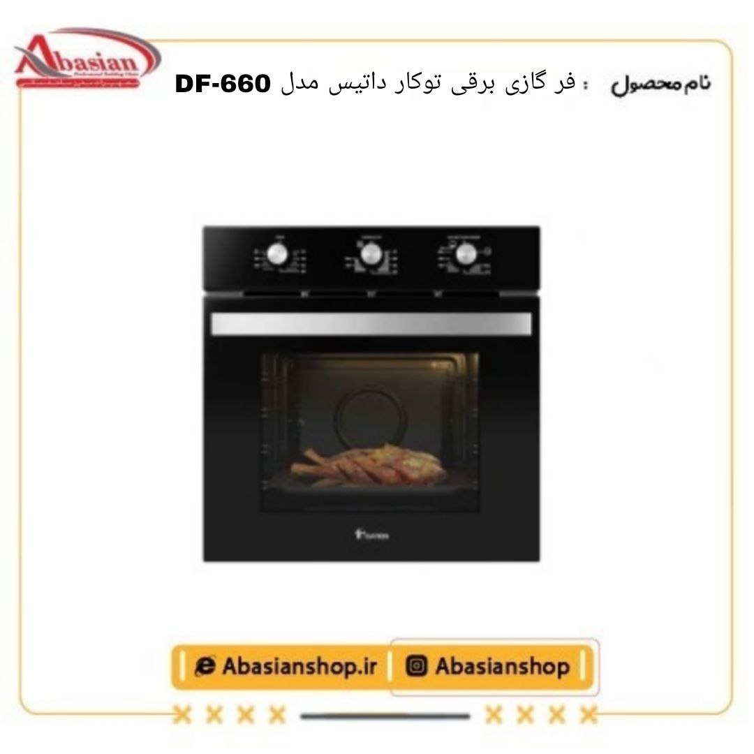 فر گازی برقی توکار داتیس مدل DF-660 از سری فرهای توکار ترکیبی گاز و برق داتیس است که با طراحی شیشهای مشکی، دستگیره آلومینیومی نقرهای و ولومهای فلزی، هم از نظر ظاهری و هم از نظر کارایی گزینهای مناسب برای آشپزخانههای مدرن و کلاسیک به شمار میرود. ظرفیت ۷۸ لیتری، سیستم گرمایش ترکیبی و امکانات کامل پخت، این مدل را برای پخت انواع غذا، کیک، شیرینی و کباب بسیار کارآمد کرده است.