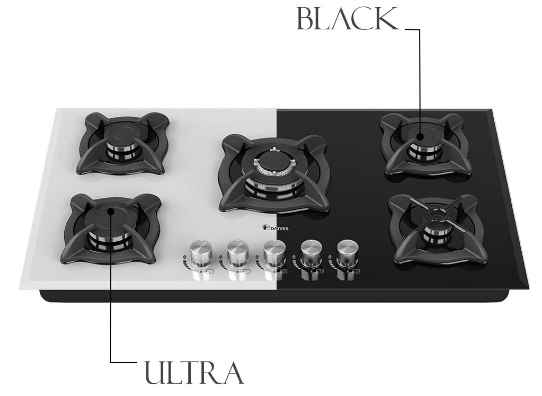 | ویژگی اصلی | پنج شعله با چیدمان کاربردی، طراحی صفحه شیشهای مشکی، شبکه چدنی مستحکم و مناسب برای آشپزخانههای مدرن |