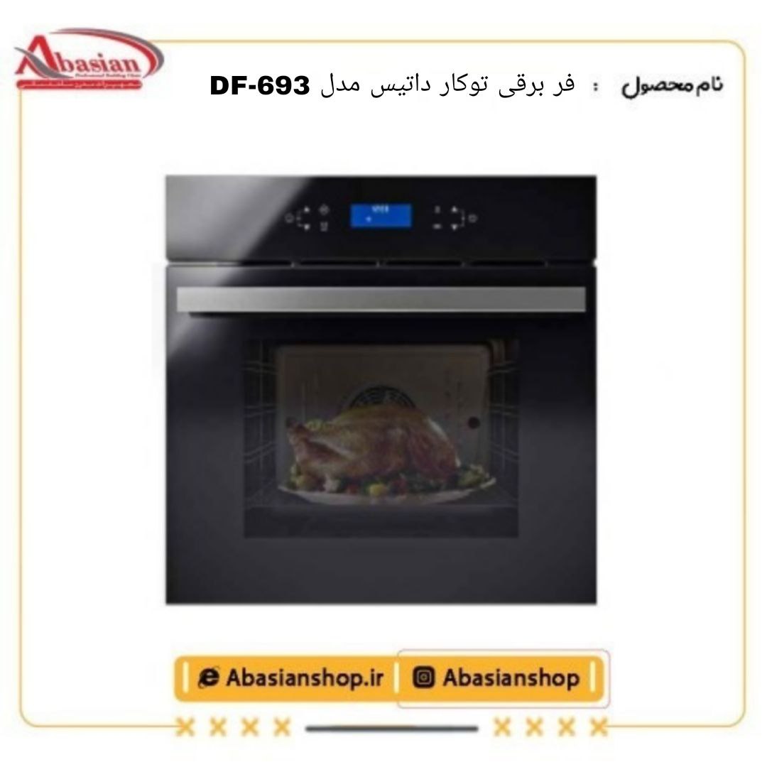 فر برقی توکار داتیس مدل DF-693 یک فر تمامبرقی توکار با نمای شیشهای مشکی، ظرفیت حدود ۷۸ لیتر و برنامههای متنوع پخت است که برای آشپزخانههای مدرن و خانوادههایی که به طراحی شیک و عملکرد حرفهای اهمیت میدهند، گزینهای بسیار مناسب محسوب میشود.