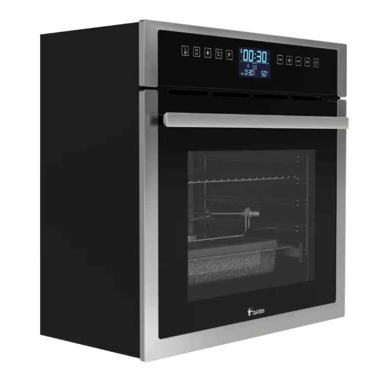 فر برقی توکار داتیس مدل DF-654 یک فر توکار مدرن و کارآمد با گنجایش ۷۸ لیتر است که به خوبی در آشپزخانههای امروزی جا میگیرد. این مدل با طراحی شیک، کاربری ساده و امکانات حرفهای، گزینهای مناسب برای پخت انواع غذا، شیرینی و غذاهای رژیمی به شمار میرود.